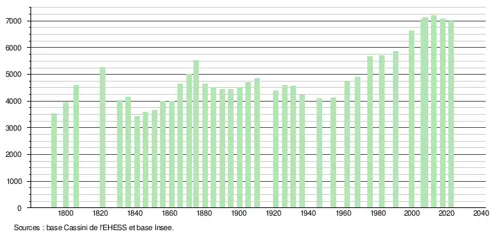 - ↑ Fiches Insee - Populations de référence de la commune pour les années 2006, 2007, 2008, 2009, 2010, 2011, 2012, 2013, 2014, 2015, 2016, 2017, 2018, 2019, 2020, 2021 et 2022.