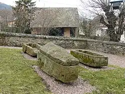 - ↑ « Fontaine du 17e siècle », notice no PA00085690, sur la plateforme ouverte du patrimoine, base Mérimée, ministère français de la Culture.