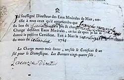 Le , François Chicoyneau, Premier médecin du roi et Surintendant des eaux minérales, concède la charge d'intendant des « eaux de Mié dans la vicomté de Turenne » au docteur Foulhiade. Ce dernier était chargé de contrôler l'usage et la commercialisation des eaux médicinales[10].