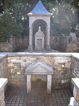 En 1890, la ville envisage le captage de la source. En 1893, le bâtiment est détruit dans un incendie. Le petit édifice de marbre est attribué au pouhon Pia.