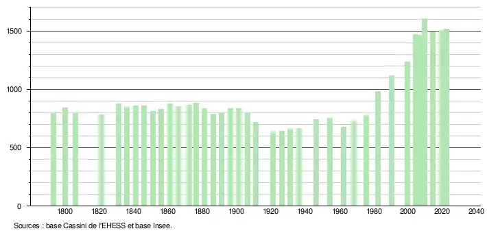 - ↑ Fiches Insee - Populations de référence de la commune pour les années 2006, 2007, 2008, 2009, 2010, 2011, 2012, 2013, 2014, 2015, 2016, 2017, 2018, 2019, 2020, 2021 et 2022.