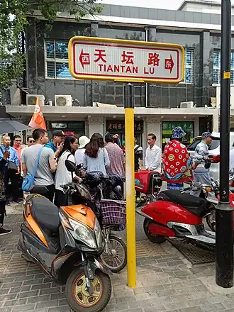 Une plaque de la rue du Temple du Ciel (天坛路 ; Tiāntánlù)