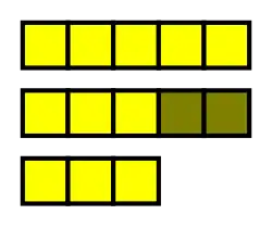 - par réduction : que reste-t-il de si on lui enlève ? Que reste-t-il de 5 objets si on en enlève 2 ? Il reste objets (autrement dit, calculer , c'est, intuitivement, « diminuer a de b ».
