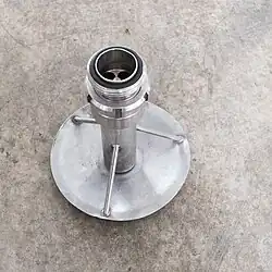 Canne de soutirage avec un mireur permettant de vérifier la clarté du vin soutiré, et de ne pas aspirer de sédiments.- Soutirage sous pression avec une canne à soutirer, d'un fût à un autre