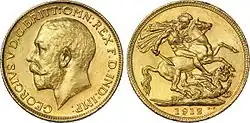 En 1910, au décès de son père Édouard VII, George V est nommé roi du Royaume-Uni de Grande-Bretagne et d'Irlande. Son effigie est placée sur les pièces de Souverains Or à partir de 1911 et jusqu'à sa mort en 1936. Son portrait est signé Edgar Bertram Mackennal, graveur et sculpteur australien[11].