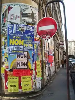 Le souverainisme dénonce le libre-échange international et la mondialisation, estimant que ceux-ci se font au détriment de la France et plus largement des nations européennes. Il est incarné à droite par Paul-Marie Coûteaux, Marine Le Pen (au moins durant la campagne de 2017, jusqu'à finalement renoncer après), cela entrainant entre autres le départ de Florian Philippot et la création du parti Les Patriotes[14]. Des personnalités politiques comme Philippe de Villiers, Charles Pasqua et Philippe Séguin issues pour le premier de l'UDF et pour les deux derniers du RPR, collaborent entre 1990 et 1995 au sein du mouvement Union pour la France. Cette collaboration sera renouvelée plus tard au sein d'une alliance Séguin - De Villiers pour les élections européennes de 1999 à tendance nettement plus souverainiste.