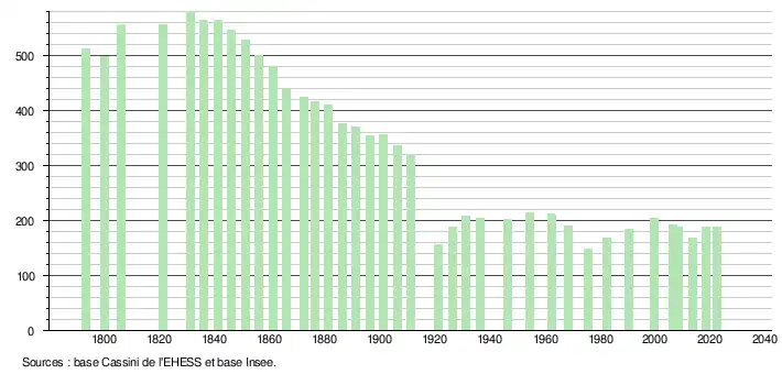 - ↑ Fiches Insee - Populations de référence de la commune pour les années 2006, 2007, 2008, 2009, 2010, 2011, 2012, 2013, 2014, 2015, 2016, 2017, 2018, 2019, 2020, 2021 et 2022.