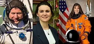 De g. à d. : Tracy Caldwell, Oleg Novitski et Marina Vassilievskaïa | ||||||||