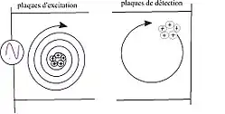 Le spectre de masse obtenu provient de la détection du courant induit par le mouvement cyclotronique. Ainsi, les ions entrant dans la cellule doivent être excités pour pouvoir être détectés au niveau des plaques dites de détections[3].