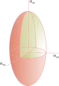 Les trois scalaires , et , correspondent à la valeur de la constante d'écran selon les trois directions principales. Ce tenseur peut se représenter sous forme d'un ellipsoïde dont la forme dépend de la symétrie de l'interaction. Notamment, si l'interaction est de symétrie axiale (), l'ellipsoïde est un ellipsoïde de révolution. Si les trois valeurs sont égales, le système est isotrope et peut alors être décrit par une seule constante d'écran .
