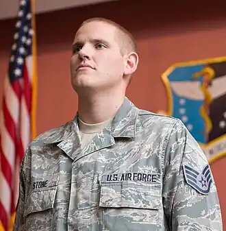 En 2012, Stone intègre l'United States Air Force.