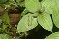 Les fleurs naiſſent à l'extrémité des rameaux, entre deux feuilles oppoſées, au deſſus de deux plus grandes.