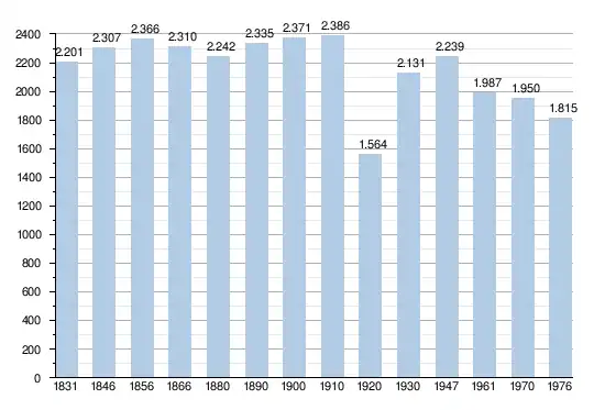 - Sources : INS, Rem. : 1831 jusqu'en 1970 = recensements, 1976= population au 31 décembre[1].