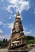 Quelques variantes géométriques en formes de disque, cône, tétraèdre, pyramide, triangle ou de cube exposées dans divers lieux du monde.