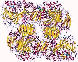 - ↑ Une kinase est une enzyme du groupe des transférases qui catalyse les réactions de phosphorylation par l'ajout d'un ion phosphate à une molécule cible, à partir de l'ATP