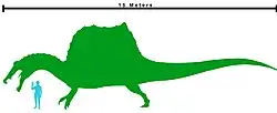 Spinosaurus est un genre fossile de dinosaures théropodes appartenant à la famille fossile des Spinosauridae et ayant vécu à l'Albien (partie supérieure du Crétacé inférieur, il y a environ 100 Ma) et au Cénomanien (base du Crétacé supérieur, il y a environ 97 Ma), dans ce qui est actuellement l'Afrique du Nord[a].