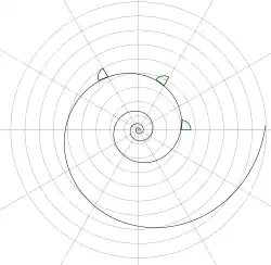 Cette propriété est caractéristique des spirales logarithmiques[3] qui sont de ce fait souvent appelées spirales équiangles.