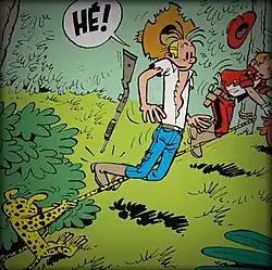 - ↑ Voir ultime planche de l'album (la #59), première vignette