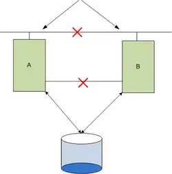 Un split-brain se produit lorsque deux parties d'un cluster d'ordinateurs sont déconnectées, chaque partie croyant que l'autre ne fonctionne plus[1]. Le terme est une analogie médicale du syndrome split-brain (littéralement « cerveau scindé »).
