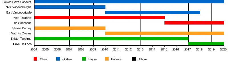 En 2015, le chanteur fondateur Niek Tournois quitte le groupe pour se concentrer sur sa vie de famille[4]. Il est remplacé par Iris Goessens, ancienne chanteuse de Drunken Dreams, groupe qui ne poursuivra pas après son départ.