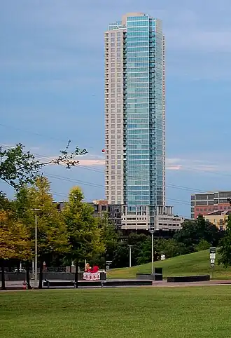 Il est le cinquième plus haut gratte-ciel de la ville d'Austin. L'immeuble mesure 132 mètres et possède 43 étages.