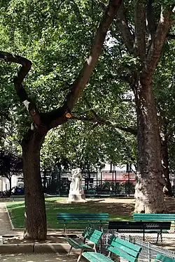 Les deux platanes et la grille en fonte, dont les motifs sont en forme de cœur avec entrelacs et épis, sont les seuls éléments subsistants du square d'origine, entièrement rénové en 1981[1].