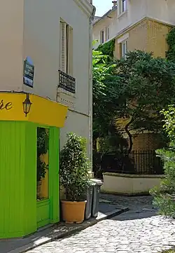 Le square des Peupliers est bordé de maisons de ville et de petits immeubles. Pavée, la voie est piétonne et les jardinets des différents pavillons sont abondamment arborés, donnant à cette voie une ambiance champêtre particulière.