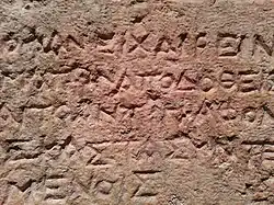 Les trois lettres figurant sur la stèle apparaissent dans une séquence chronologique inverse par rapport à leurs dates de rédaction. Les deux premières lettres sont datées du mois de Gorpiæos de l'année 134 de l'ère séleucide, c'est-à-dire à l'été 178 av. J.-C.[1]. Le mois de Gorpiæos du calendrier macédonien correspond approximativement au mois d'août selon le calendrier julien. La dernière lettre, chronologiquement la première, est un ordre du roi Séleucos IV à son ministre Héliodore. Jusqu'à la découverte des trois fragments supplémentaires, seul le long préambule de la dernière lettre était conservé. Le second document est une lettre d'Héliodore à un certain Dorymenes auquel on a aussi transmis une copie de l'ordre royal. Le premier document est une lettre de Dorymenes à Diophanes à laquelle la lettre d'Héliodore est explicitement attachée, et sans doute aussi l'ordre royal. Ni Héliodore, Dorymenes ou Diophanes ne portent de titre dans ces correspondances. Cette omission reflète la pratique habituelle des correspondances hellénistiques, mais elle ne permet pas de connaitre la fonction exacte de ces différents personnages[2].