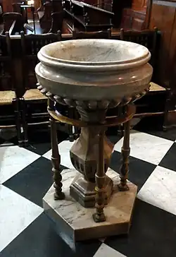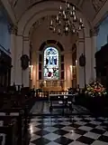L'intérieur est divisé en nef et allées par des colonnes composites, la nef étant voûte en berceau. L'église étant trop sombre, une grande fenêtre est créée, mais elle est largement masquée[8] par l'orgue installé devant en 1764[7]. En 1820, une lanterne est ajoutée au centre du toit[8].
