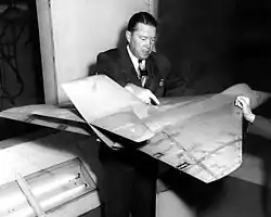 - une forme en plan de l'aile en flèche arrière présentant un vrillage négatif (diminution du calage des profils en bout d'aile). On a alors transformé le bout d'aile en empennage classique, non porteur. La flèche arrière donne un dièdre effectif, ce qui renforce le roulis induit et le couplage roulis-lacet.
