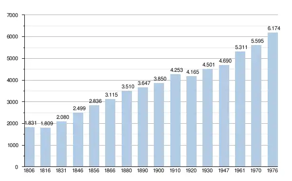 - Sources : INS, Rem. : 1831 jusqu'en 1970 = recensements, 1976 = nombre d'habitants au 31 décembre[3].
