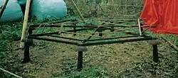 Les pierres de base s'affinent vers le haut avec une pierre de recouvrement en encorbellement placée par-dessus, ce qui empêche quasiment tout rongeur de grimper vers le foin ou le grain entreposé. L'air pouvait librement circuler sous les stocks, ce qui permettait de les maintenir au sec[6]. Un cadre ou radier en bois était placé sur le dessus des pierres, les staddles étant disposées en deux ou trois rangées, donnant seize pierres ou plus. Les hayricks (fenils), les granges dîmières (tithe barns), les greniers, etc., ont été construits par-dessus de ce cadre.
