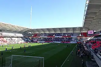 Officielle : tribune Henri-Germain (5 056 places) Latérale : tribune Francis-Méano Sud : tribune Robert-Jonquet Nord : tribune Albert-Batteux Les sièges sont blancs. |