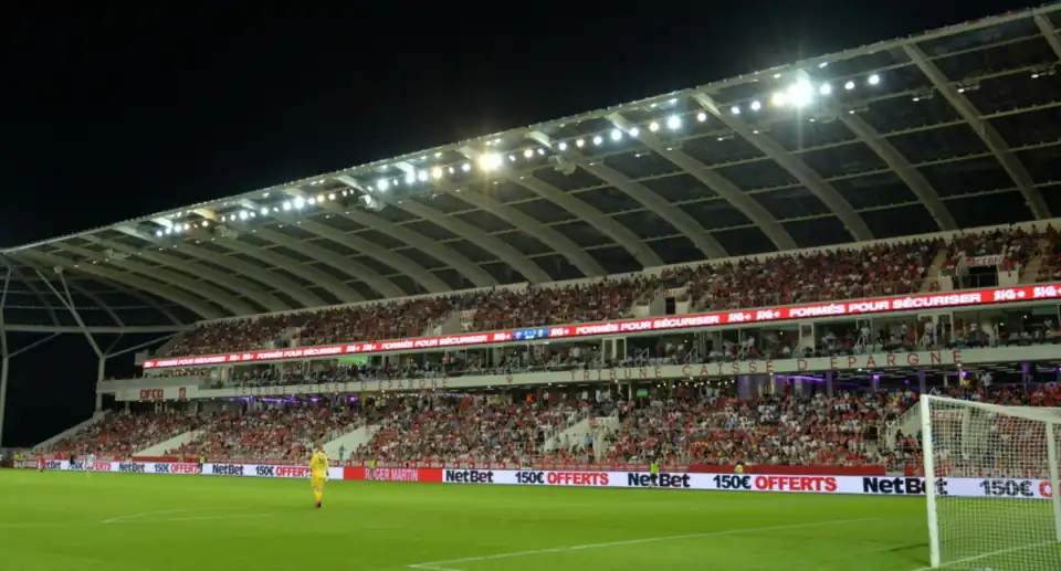 Le stade Gaston-Gérard, depuis la tribune Delin (Sud), durant un match de Ligue 1 contre l'OM
