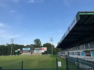 - Bloc D: 297 places debout couvertes avec buvette et sanitaires à l'arrière. Cette tribune est dédiée aux supporters visiteurs lorsqu'ils sont nombreux.