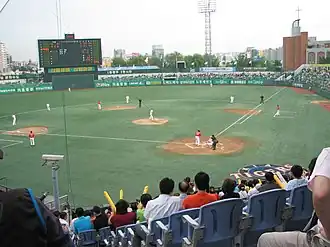 C'est le domicile des Kia Tigers de l'Organisation coréenne de baseball. Le stade a une capacité de 14 600 places.