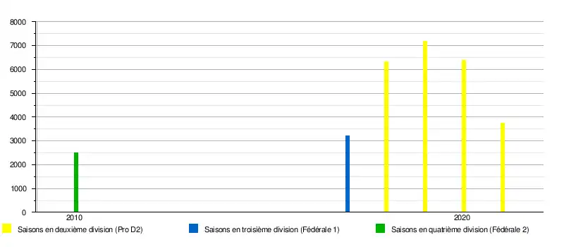 - L'affluence moyenne de la saison 2020-2021 est évalué sur 3 matchs, en raison de la Covid-19.