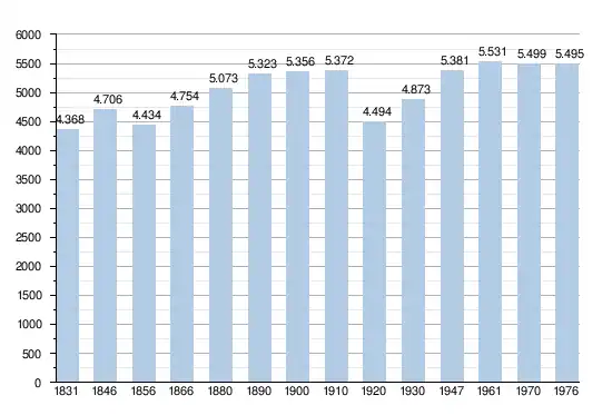 - Sources : INS, Rem. : 1831 jusqu'en 1970 = recensements, 1976 = nombre d'habitants au 31 décembre[5].