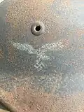 Certains rares exemplaires ont leur insigne peint et non collé comme il est de coutume (notamment pour la RLB, l'insigne de la Luftschutz étant effacé pour y peindre celui de la RLB)[5]. Ces casques sont particulièrement rares, l'insigne demandant un certain savoir-faire car étant peu aisé à reproduire. Les décalcomanies collées sont généralement présentes sur les casques d'achat personnel, les insignes peints étant souvent présents pour les unités particulières de défense de sites stratégiques civils (unités de Flak de la RLB) ayant réaffecté ces casques à l'allure bien plus militaire que les casques type "Gladiator" modèle 1938. Ces casques furent souvent réutilisés et reconditionnés après-guerre pour servir de casque de pompier ou pour les unités de gardes frontières d'Allemagne de l'Ouest (RFA).