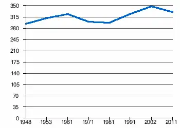 | 293 | 311 | 323 | 300 | 297 | 324 | 348[2] | 332[1] |