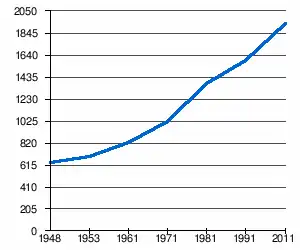 - 1 2 (sq) « Évolution de la population 1948-2011 », sur pop-stat.mashke.org (consulté le ).