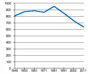 | 808 | 872 | 882 | 861 | 957 | 849 | 733[2] | 636[1] |