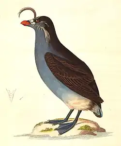- ↑ (en) U. S. Fish & Wildlife Service, « Crested auklet », Alaska Seabird Information Series,