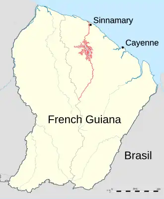 - ↑ Gosse P, Cerdan P, Richard S, Sissakian C (2001) Point sur l'évolution de l'écosystème aquatique du Sinnamary, 6 ans après la mise en eau du réservoir hydroélectrique de Petit Saut (Guyane) : Rapport HP71/00/37. Électricité de France. Paris. 20 p.