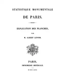Ouvrage majeur du XIXe siècle en matière d'urbanisme et d'architecture, la Statistique monumentale de Paris est rédigé sous la direction d'Albert Lenoir (1801-1891) et en grande partie par lui. On y trouve l'une des premières tentatives scientifiques de décrire l'ensemble des grands monuments parisiens, à l'aide de plans, de dessins d'architectures, et de notices exhaustives.
