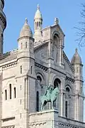 Une autre statue équestre du même sculpteur, de Jeanne d'Arc, se trouve sur le contrefort mais côté est, en miroir.