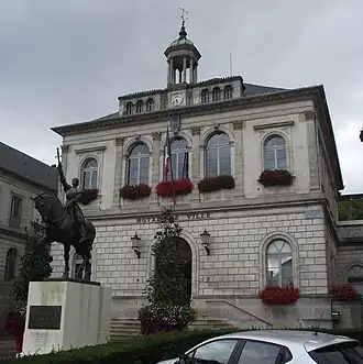 Le monument est installé sur le parvis de l'hôtel de ville de Vaucouleurs, place Achille-François, à hauteur du 17 rue Jeanne-d'Arc[52]. Il vient ainsi accompagner un musée johannique fondé en [53] dans l'aile droite de l'hôtel de ville[5].