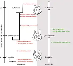 - ↑ (en) Horner, Varricchio et Goodwin, « Marine transgressions and the evolution of Cretaceous dinosaurs », Nature, vol. 358, no 6381, , p. 59–61 (ISSN 0028-0836, DOI 10.1038/358059a0, lire en ligne)