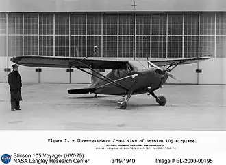 Initialement développé en tant que Stinson Model 105 (aussi désigné HW-75) en 1939, le Voyager était un monoplan triplace à aile haute renforcée, propulsé par un moteur à 4 cylindres à plat Continental A-75 (en) de 75 ch (63,4 kW) ou un Continental A-80 (en) de 80 ch (67,7 kW)[2]. Cet avion évolua ensuite vers le Model 10, propulsé par un Continental A-80[2] et proposant une cabine plus large dotée d'un intérieur amélioré, en termes d'équipements et de finitions[2]. Le Model 10 fut suivi par le Model 10A, propulsé par un Franklin 4AC-199 (en), et le Model 10B, propulsé par un Lycoming GO-145 (en)[2].