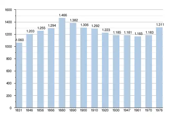 - Sources : INS, Rem. : 1831 jusqu'en 1970 = recensements, 1976 = nombre d'habitants au 31 décembre.